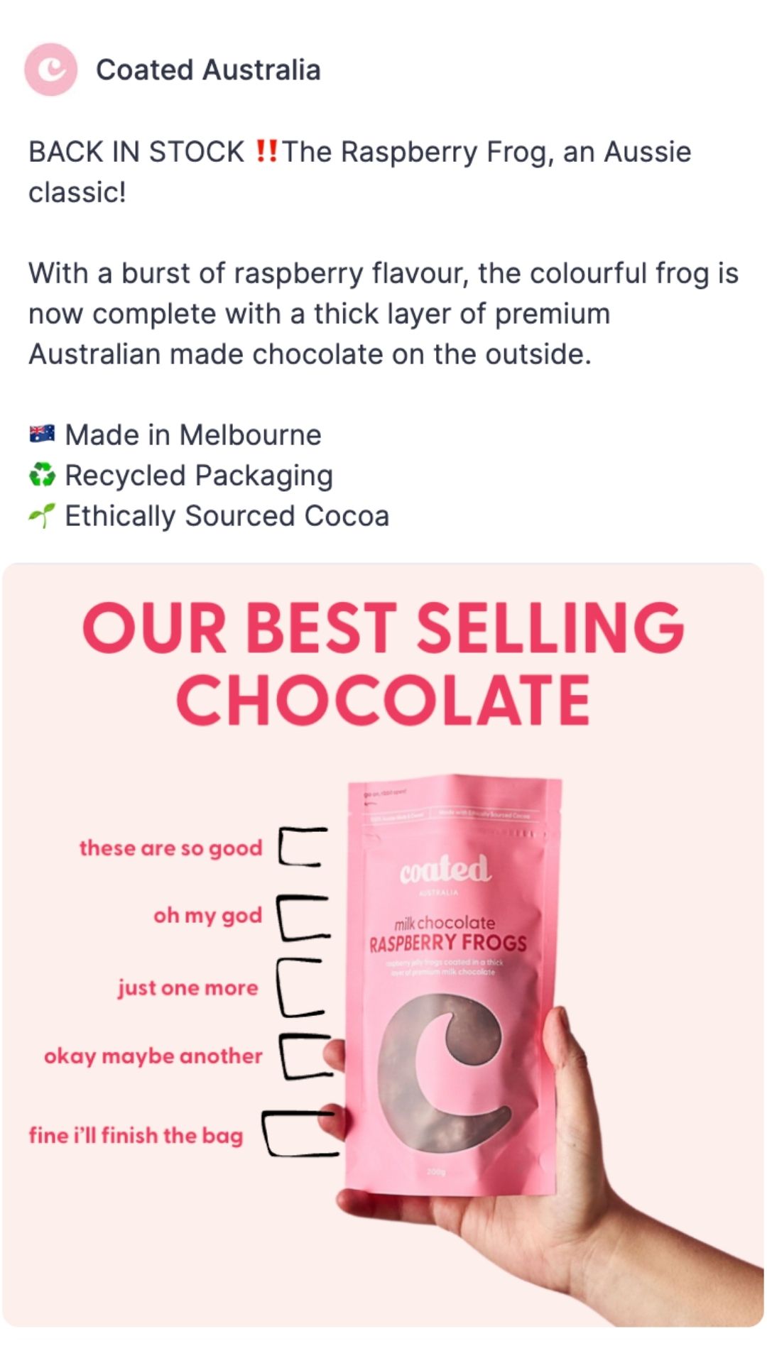 By leveraging a powerful brand story, we helped an Aussie chocolate business drive $180k+ in revenue from one high-performing ad.
